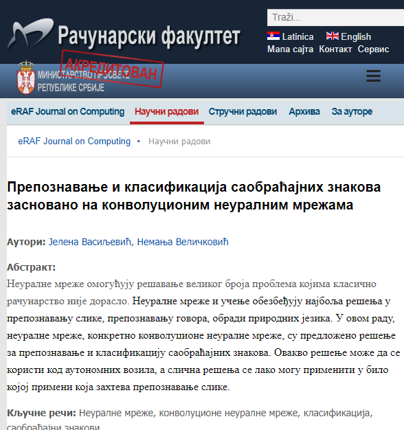 Objavljeni radovi u časopisima i konferencijama